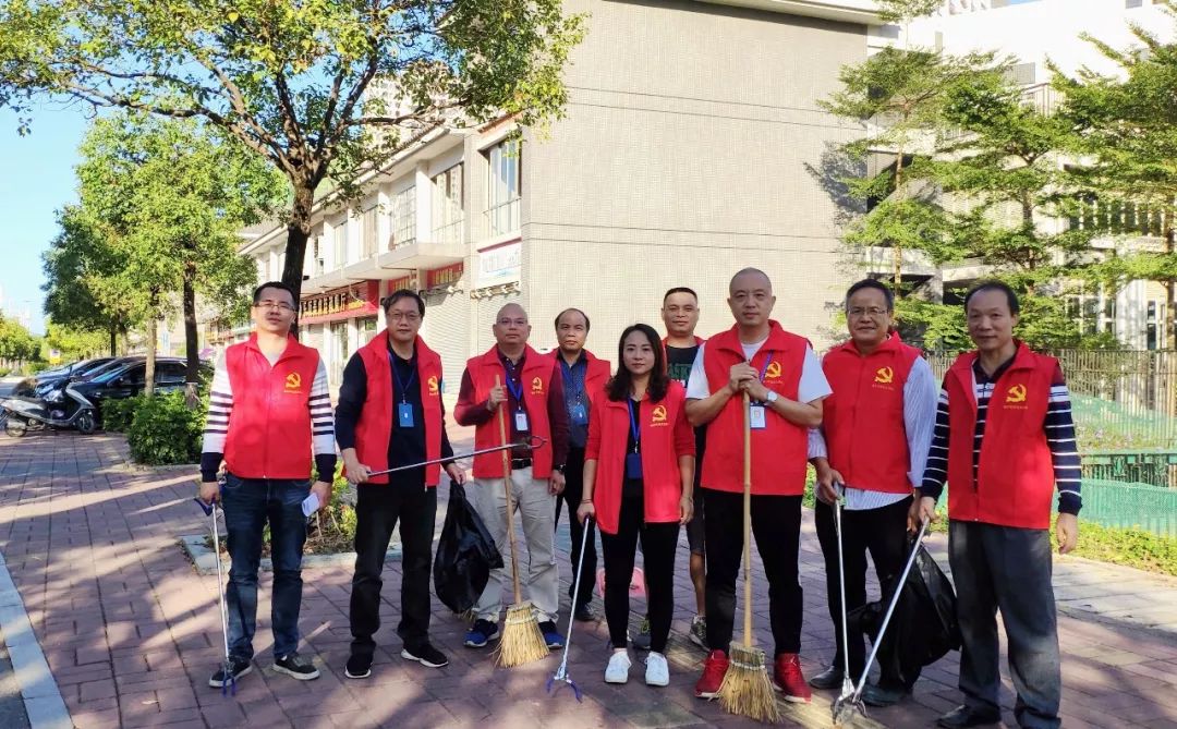 △邓立初同志(右三)参与大街卫生清洁自愿活动。
