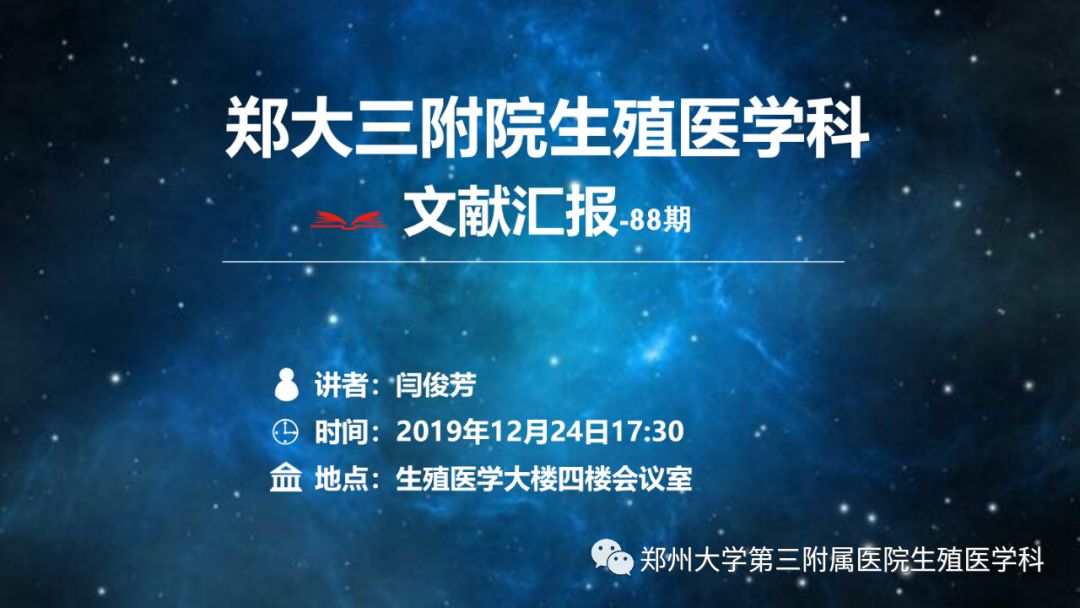 原标题:郑大三附院生殖医学科文献报告第88期预告