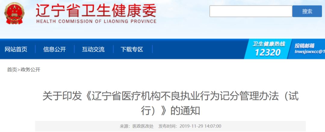 近来,辽宁省卫健委发布《关于印发辽宁省医疗组织不良执业行为记分办理方法(试行)的告诉》(以下简称《办理方法》)。
