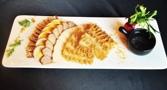这道菜虽算不上什么大补餐,却能添加人的食欲。潮州卤水拼盘一般由鹅掌、鹅翼、鹅肉、鹅肝、五花腩组成,最最精华之处反而在与“卤水”,咸淡适中,让人顿觉食欲大开。