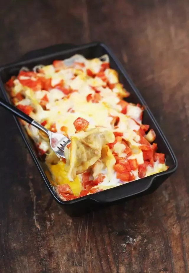 这样便做成啦!西红柿蛋焗饺子,是剩饺子最富丽的变身,铺上西红柿碎,再撒奶酪碎焗熟,酸甜鲜香,奶酪味浓郁。给你的不止是味觉上的享用。
