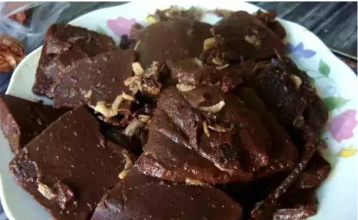 猪血又称猪红、血花。将乐农家在搬家宴席中,必上的一道菜便是猪血。其间缘由,与方言有关。本来,当地人把猪血叫作煃发,谐音“会发”,意欲发家发财。
